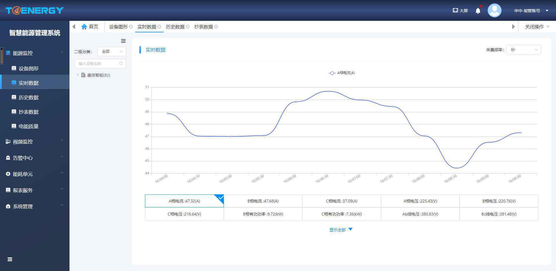 随时查看智能终端的实时数据、历史数据、事件数据、谐波分析、抄表数据。帮助用户快速溯源故障发生点,实时掌握设备运行状态。