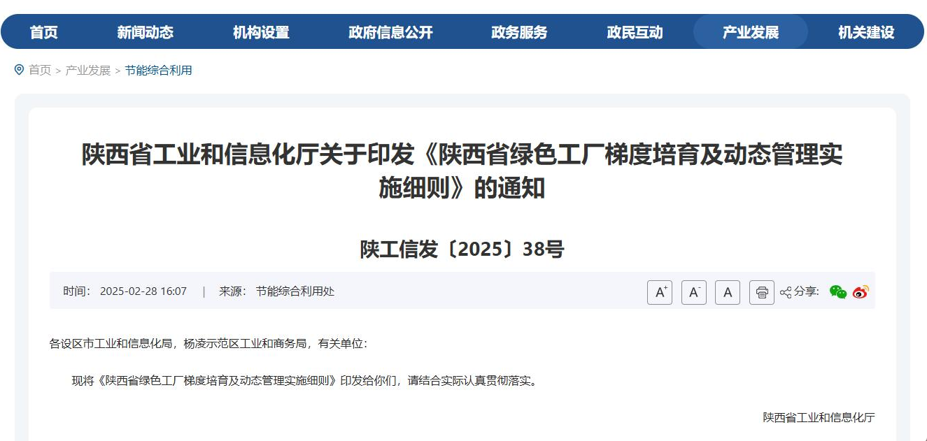 为贯彻落实《陕西省绿色工厂梯度培育及动态管理实施细则》,加快形成规范化、长效化培育机制,推进工业绿色发展,助力工业领域碳达峰碳中和,现组织开展陕西省2025年绿色制造名单申报工作。
