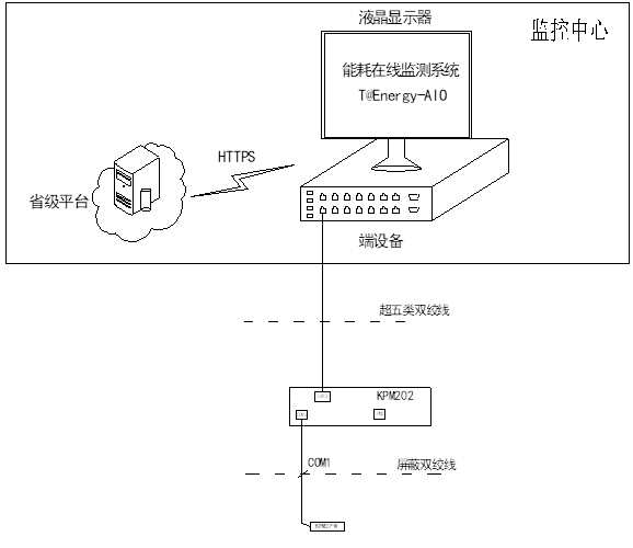在厂区的1个一级电力监测点处均安装三项导轨式智能电力能效终端,实现对厂区总耗电量的采集,电表数据通过通迅管理机采集、转换后上传。通迅管理机通过连接网线将数据传输至中控制内的端设备。